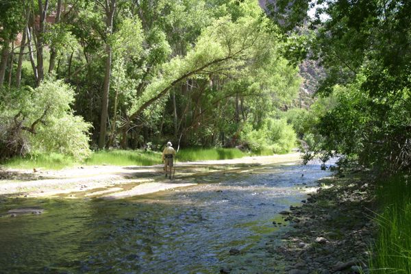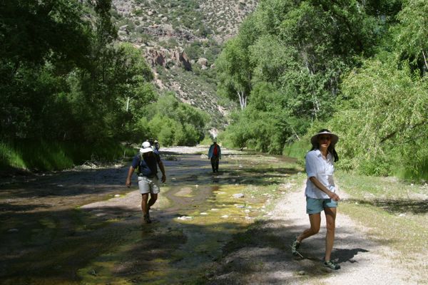 You slog the creek; to call it "hiking" would be, eh...not even wrong. Sand, gravel, and boulders the size of Volkswagens infiltrate your sneakers-watershoes-boots-sandals. Suddenly, your feet weigh 150 lbs. each. You will blister! The blisters will burst and fester and eventually, your feet, first one then the other, will rot and fall off. There is no escape! Never come here! Stay away if you value your limbs! They don't call it the Hell's Half Acre for nothing...